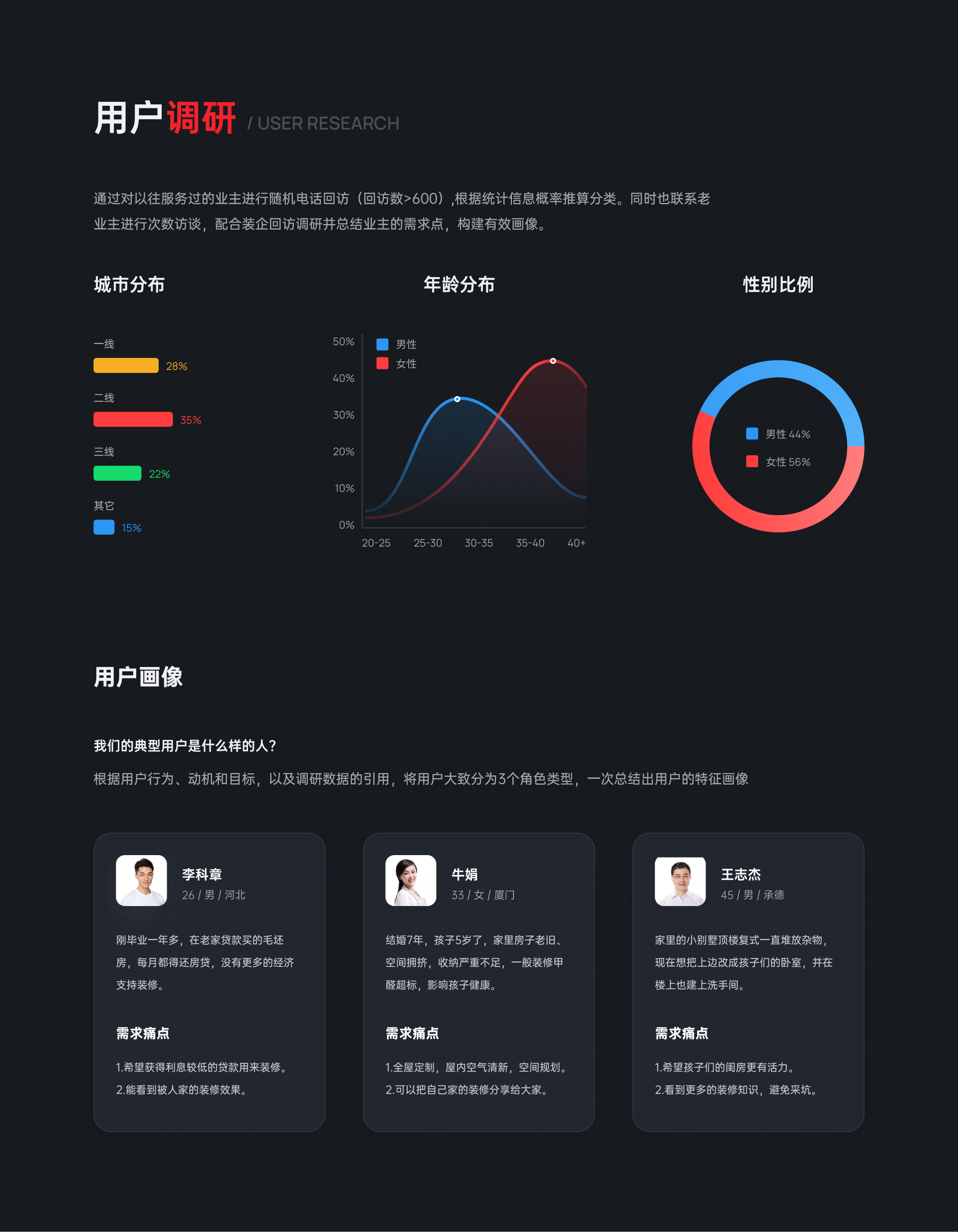 2.项目初期,我提出了问卷式的调研方式,提高效率的同时也节省了一部分成本;通过业主群和客服回访的方式同时进行前期调研。